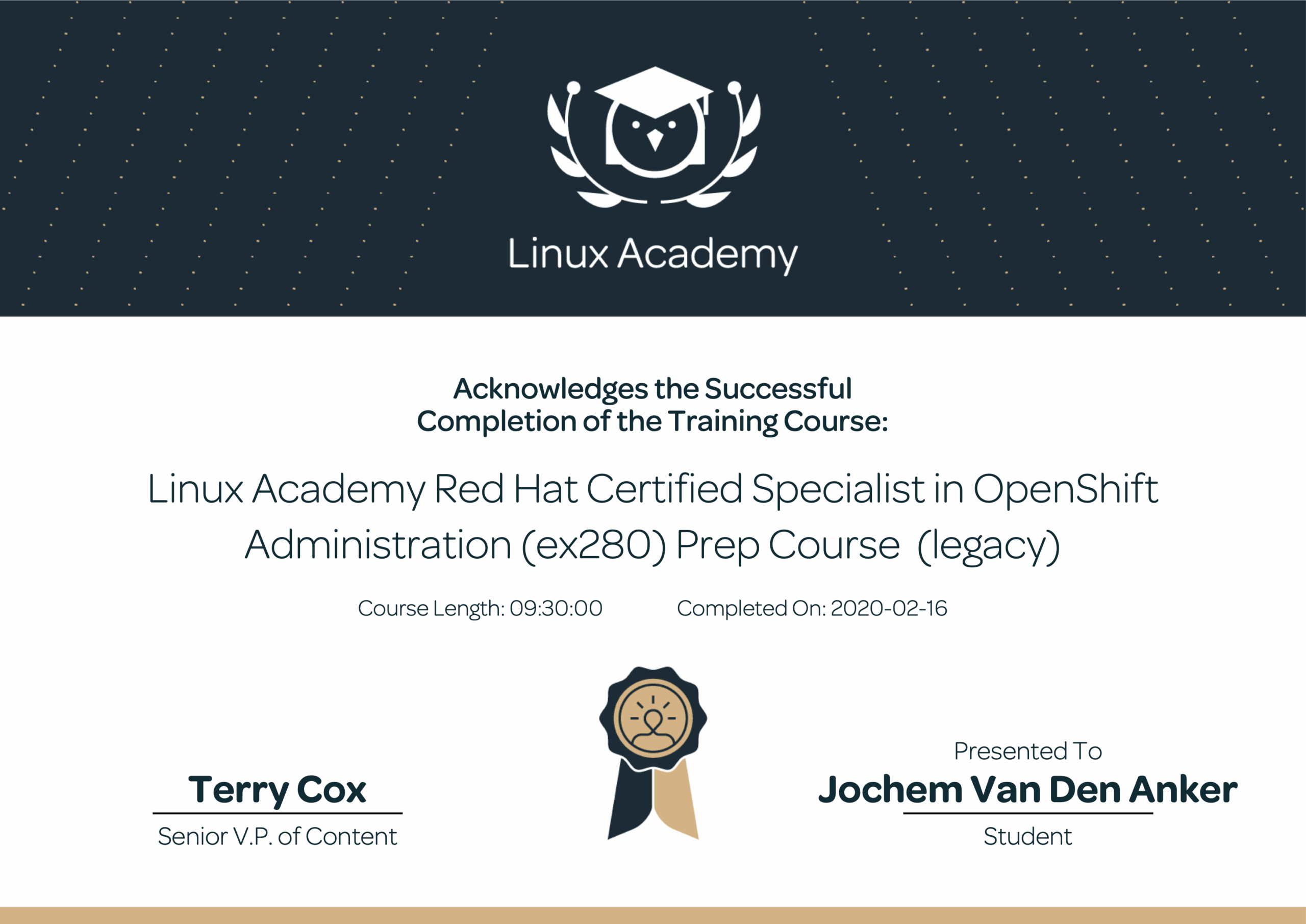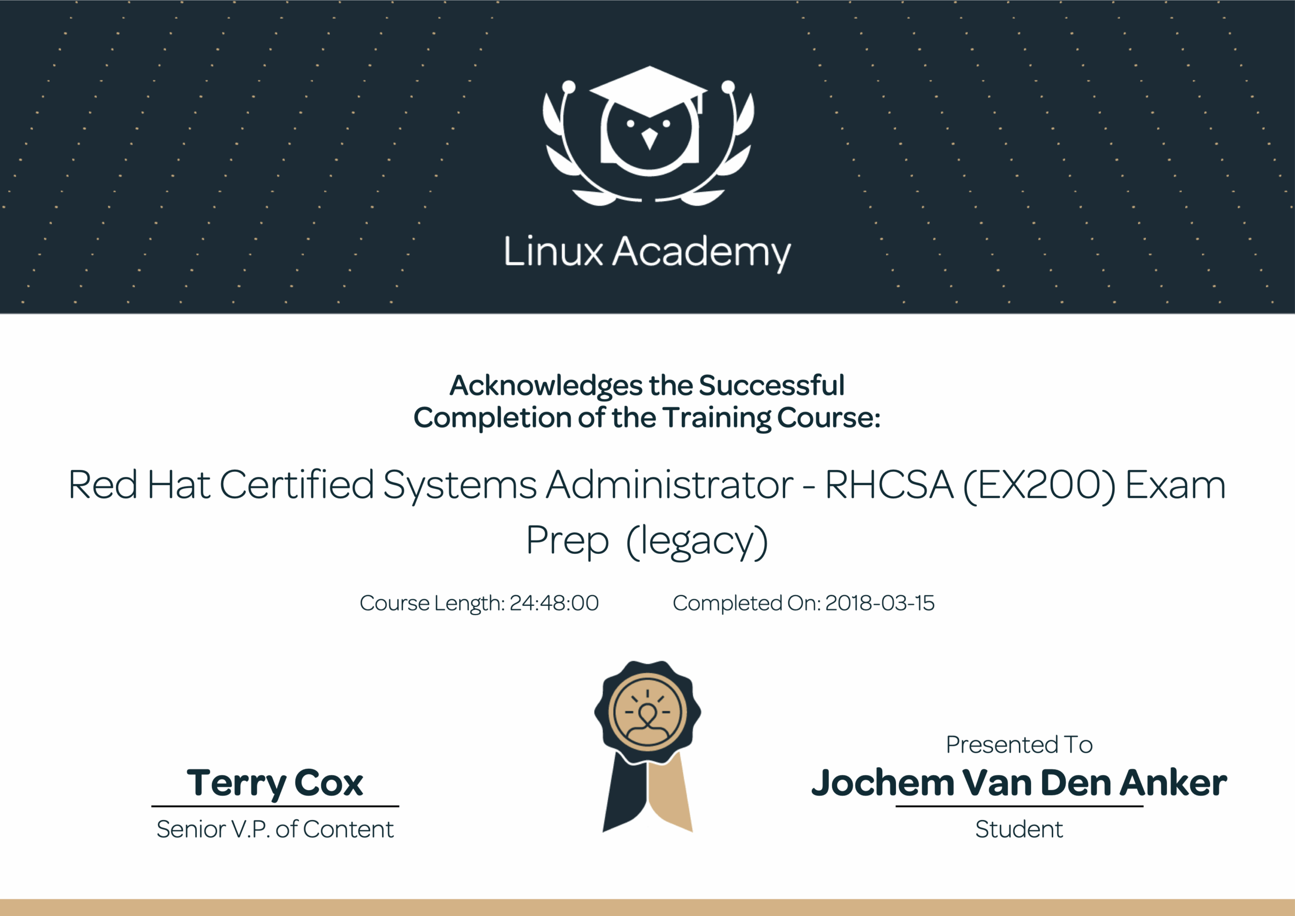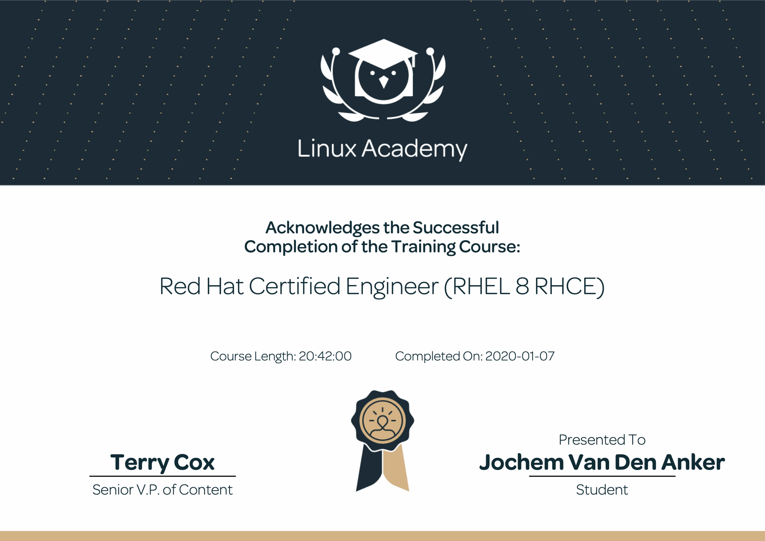 Inmiddels heb ik ook een Red Hat certificering: