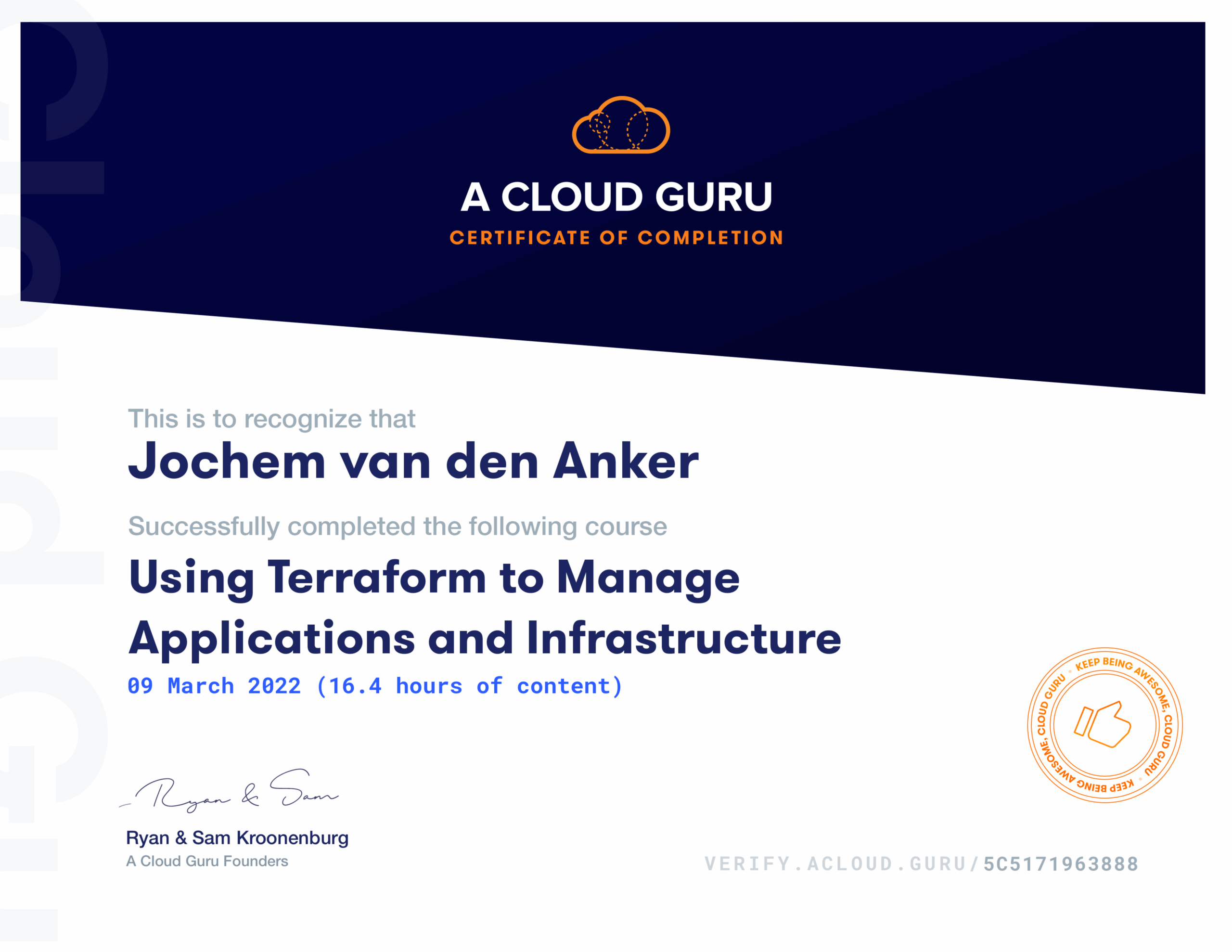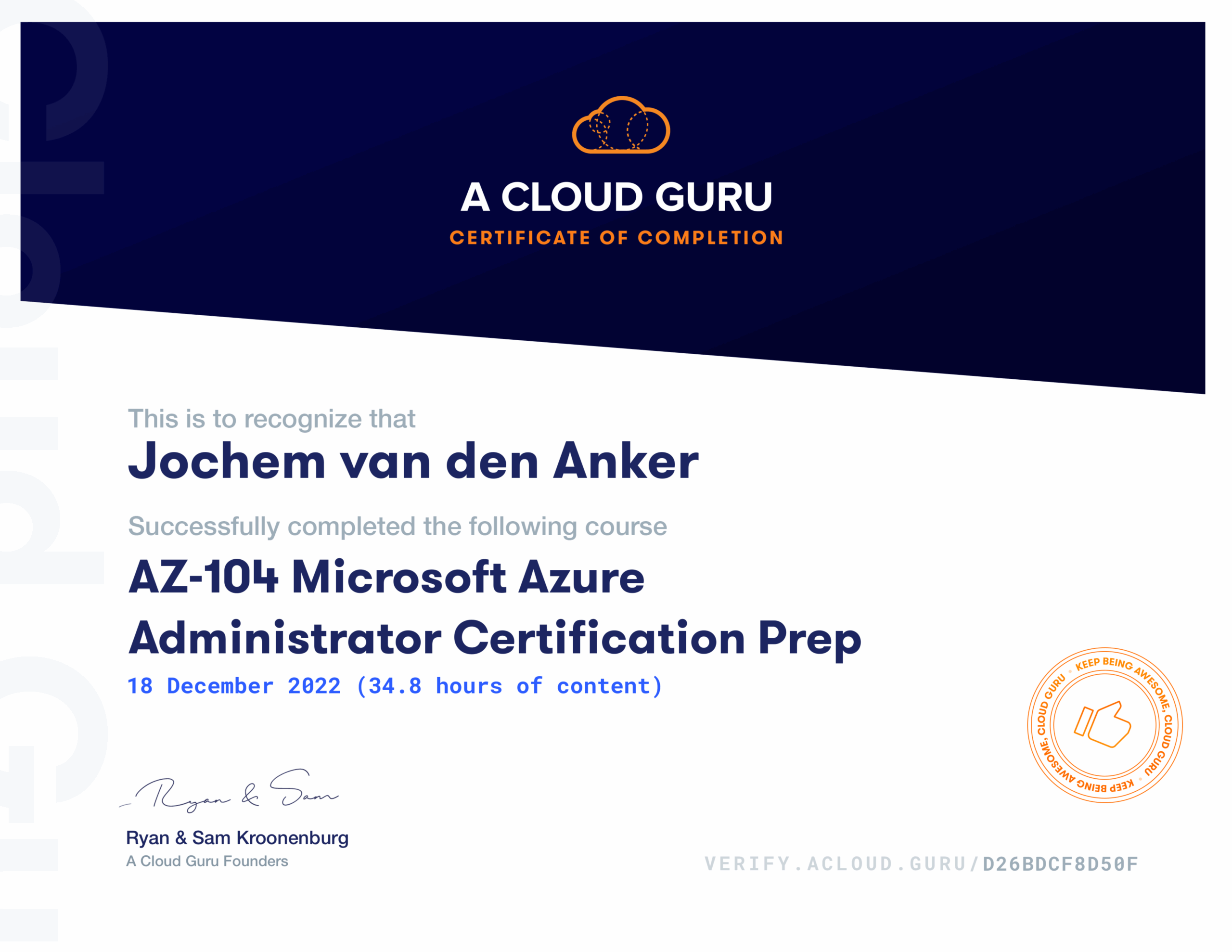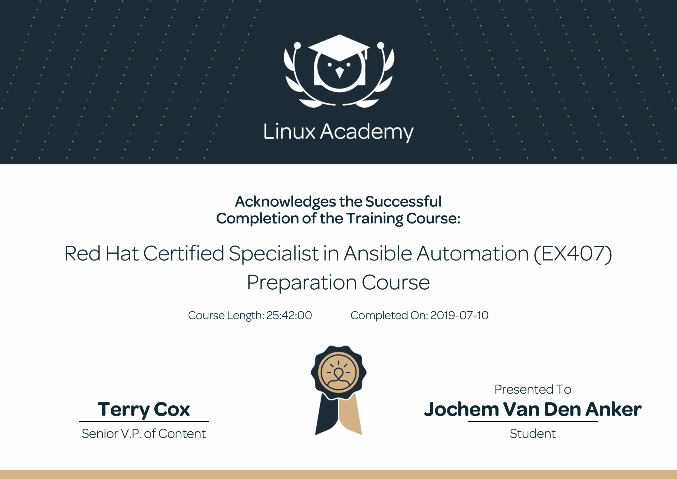 Inmiddels heb ik ook een Red Hat certificering: